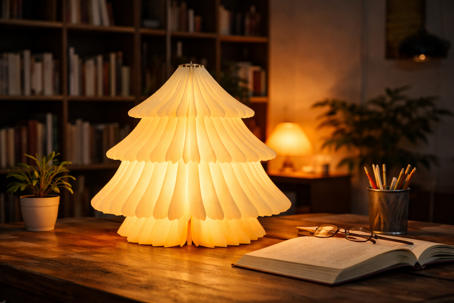 HDC Handcrafted Paper Folding Table Lamp with Ambient Glow Decorative Fan Lamp for Bedroom, Living Room & Café Décor