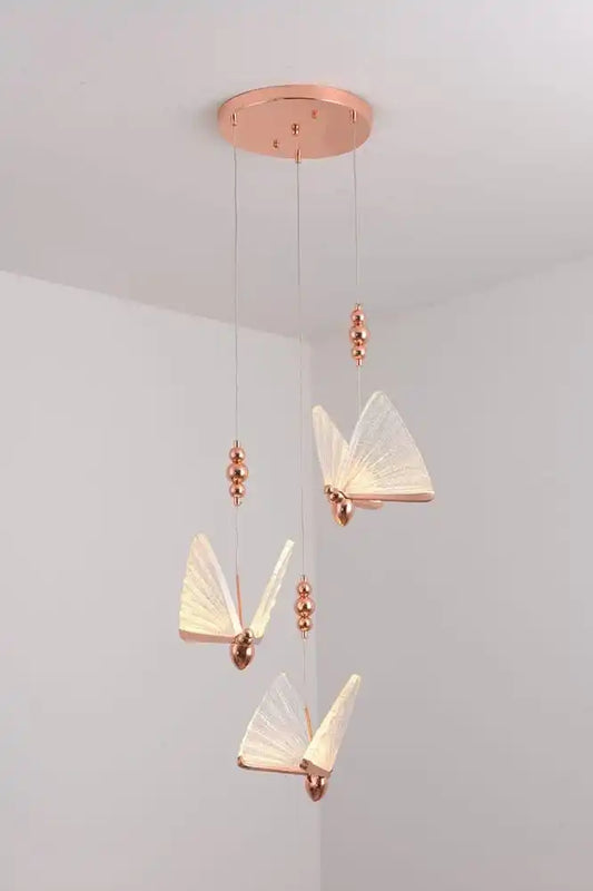 HDC Led 3 Light Gold Butterfly Bedside Hanging Pendant Ceiling Lamp Light Fixture - Warm White
