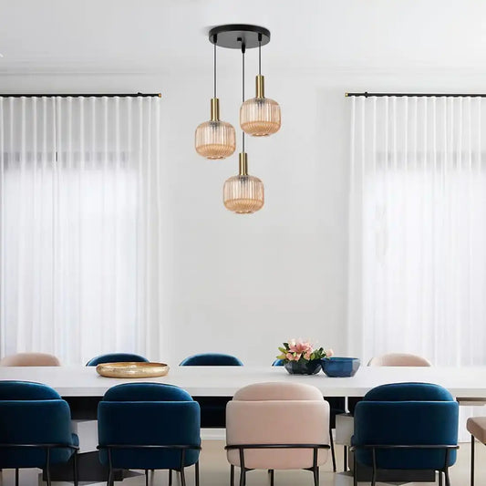 HDC 3 Light Amber Glass Pendant Light for Living Room