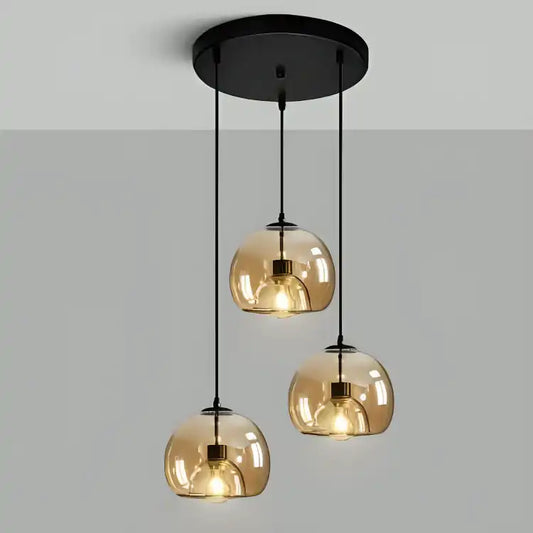 HDC Modern Smokey Glass Hanging Pendant Chandelier Light For Kitchen Living Room Bedroom Set of 3