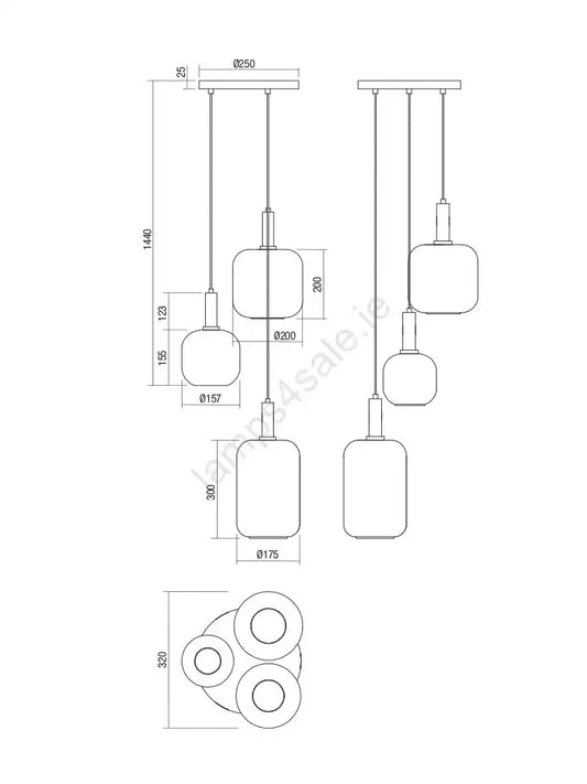 HDC 3-Light Amber/Grey Pendant Bedside Ceiling Light