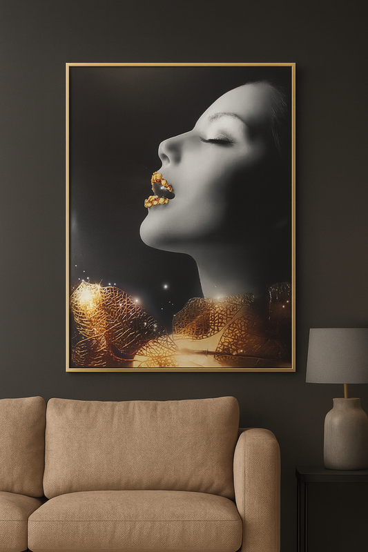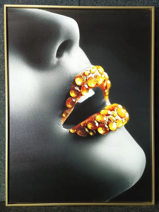 Hdc Golden Makeup Woman Lips with Gems Portraits Aesthetic Wall Art Poster for Living Room, Home & Wall Decor