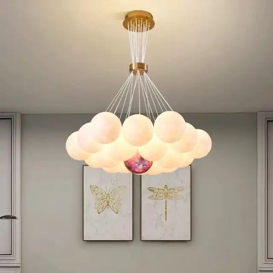Hdc 12+1 Morden LED Lunar Ceiling Chandeliers 3D Ball Pendant Lights for Living Children's Room Bedroom Hanging Lamps Home Decor Lustre