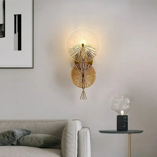 Hdc Modern smoke glass simple gold background wall living room decorative wall lamp