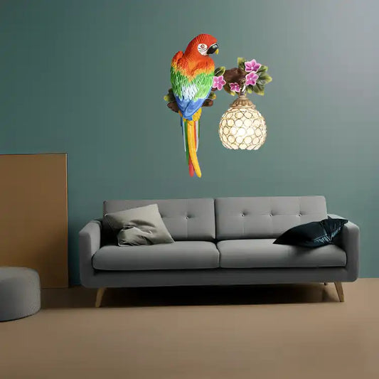 Hdc Parrot Resin Wall Mounted Led Night Lamp Antique Wall Light Lamp- Colourful