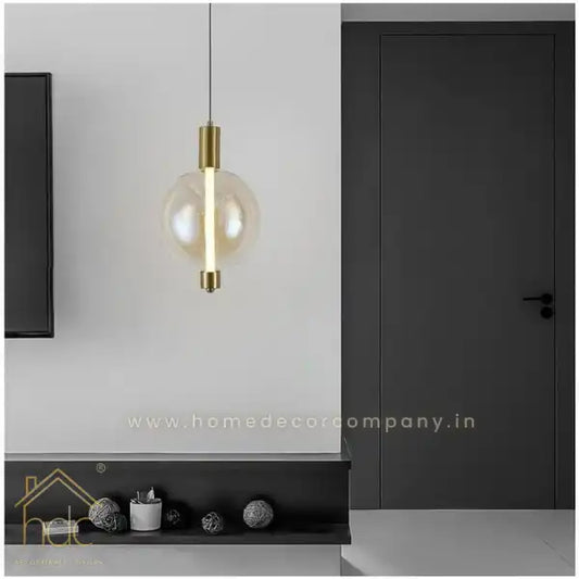 HDC 1 Light Amber Glass Pendant Ceiling Light For Bedroom Dining Room - Warm White