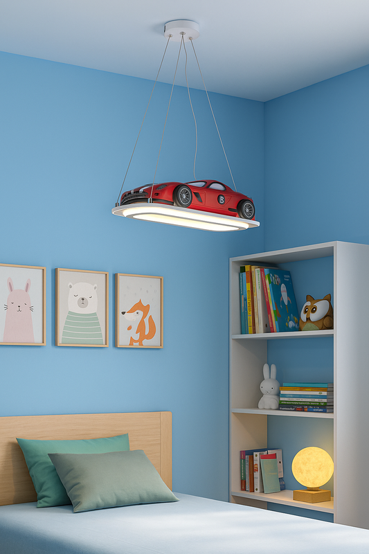 Hdc Red Sports Car LED Ceiling Light for Kids Bedroom – Modern Pendant Lamp for Boys Room & Playroom Decor