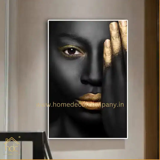 Hdc Sexy Gold Lip Closed Eye Black Woman Figure Canvas Painting Wall Art Posters for Living Room Home Wall Decor