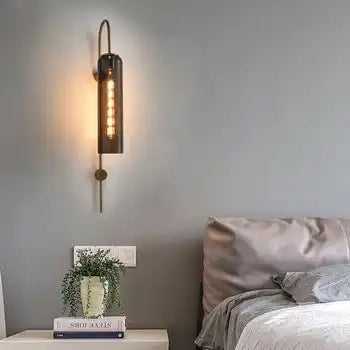 HDC Smokey Long Glass Wall Light Modern Copper Metal Bedroom Living Room Wall Light - Gold Warm White