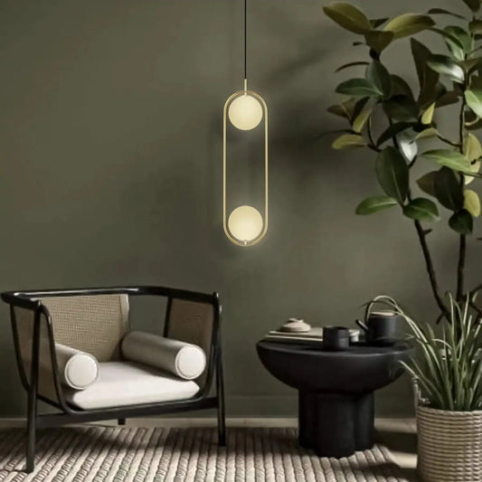 HDC 2 Light Led Glossy Gold Frosted Balls Pendant Lamp Chandelier Ceiling Light