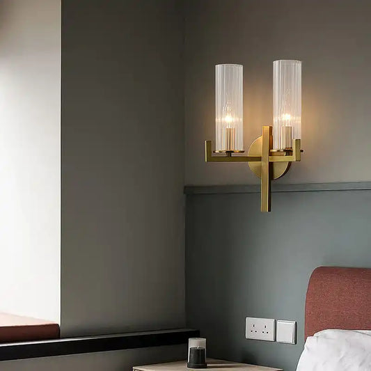Hdc 2 Light Gold Metal Fluted Glass Wall Light Metal
