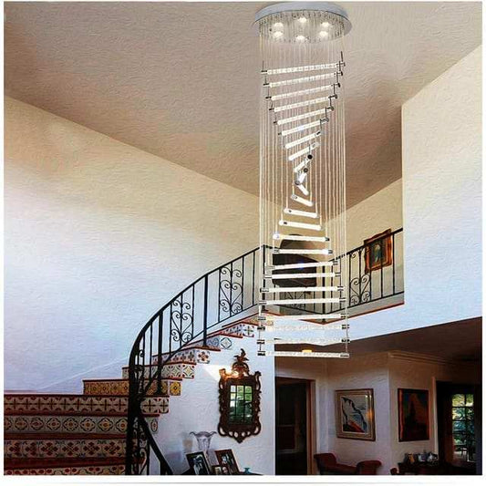 HDC 20 Lights LED Crystal Meteor Light Double Height Stair Chandelier- Tricolor