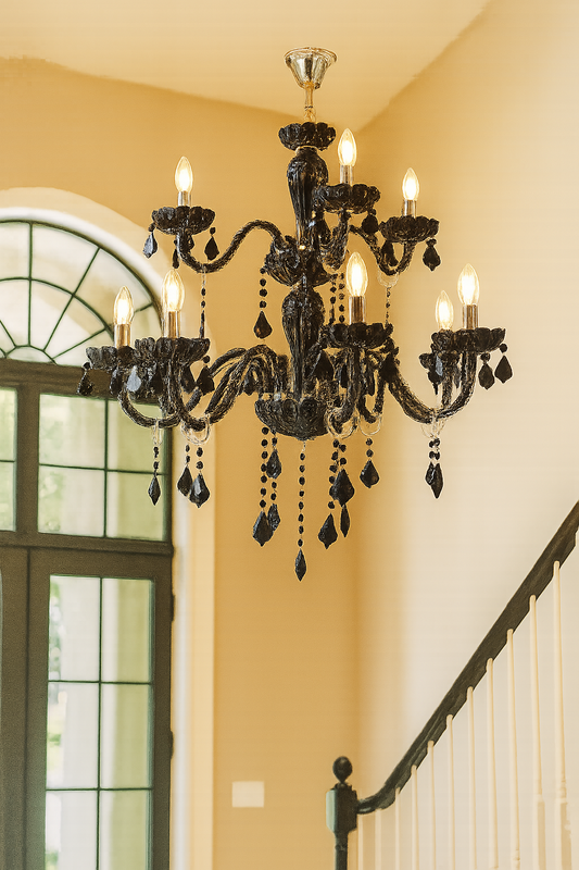 HDC 24-Light Midnight Imperial Multi-Tier Black Glass Italian Chandelier