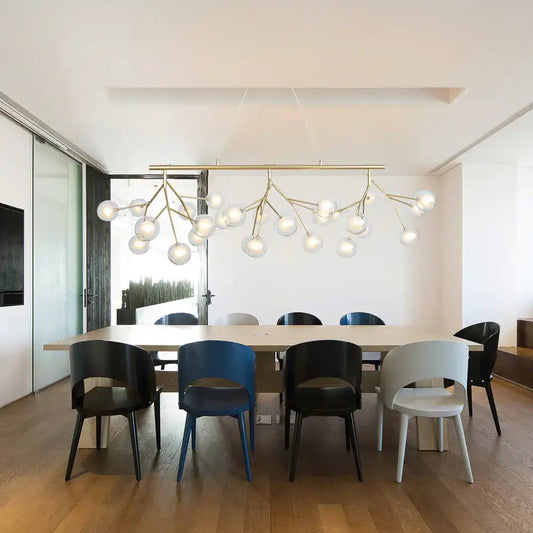 HDC 27 Lights Amber/ Smoke Ball Firefly Black Chandelier Adjustable Brass Heracleum Led Ceiling Light Hanging Lamp - Warm White
