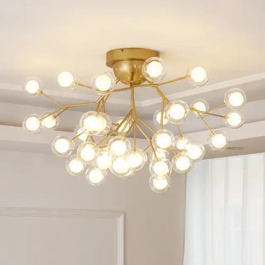 Hdc 27 Lights Ball Firefly Gold Chandelie Glass Ball Led Ceiling Light Hanging Lamp - Warm White
