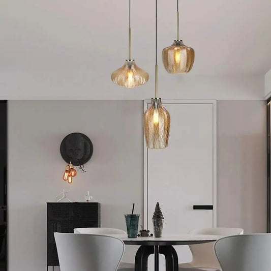 HDC 3 Light Amber Glass Pendant Light for Living Room
