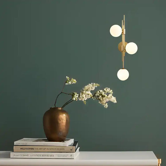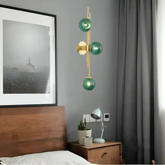 HDC 3 Light Gold Metal Green Glass Ball Wall Light Metal - Warm White