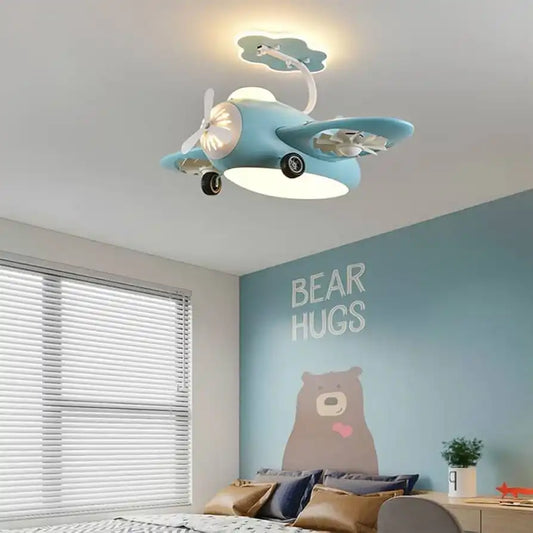 Hdc Children's Flying Plane LED Helicopter Lamp For Kids Girls Boys Bedroom with Lamp Remote Control Blue Pink Fan Chandelier