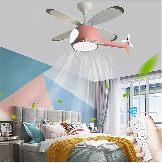 Hdc Creative Helicopter LED Ceiling Fan Lighting with Remote Control, Adjustable 6 Wind Speed Reversible, Children's Room Ceiling Lights