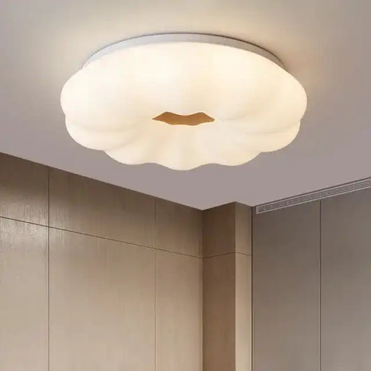 Hdc 400mm Nordic Cream Cloud Flower Master Bedroom Wood Pumpkin Lamp LED Ceiling Light