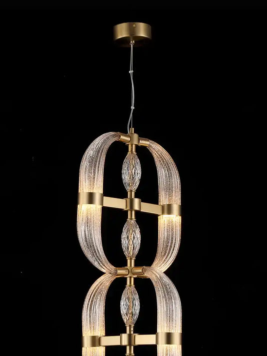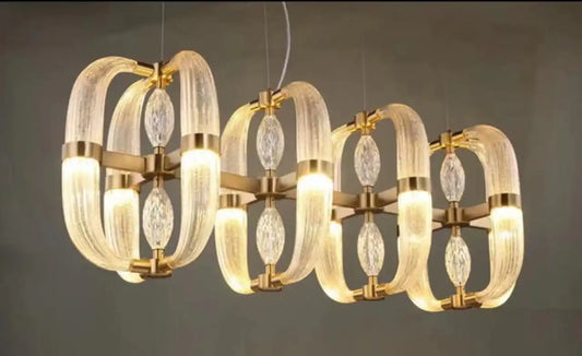 Hdc 1200x400 Mm Frost Clear Glass Gold Metal Led Chandelier Hanging Suspension Lamp - Warm White