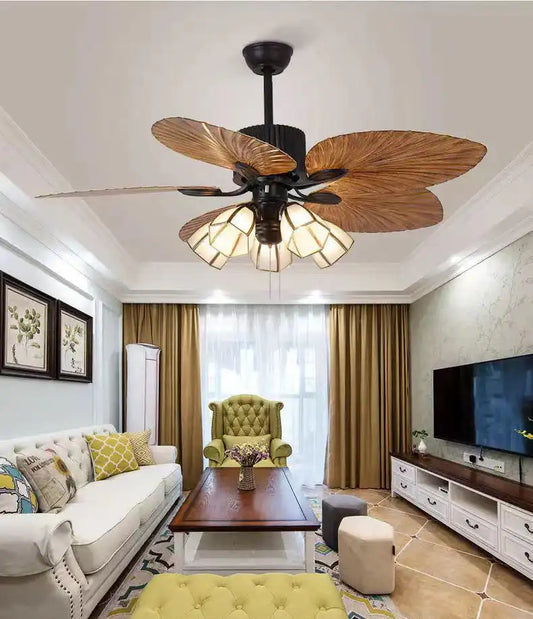 HDC Tropical Ceiling Fan with Lights, 5 Reversible Palm Leaf Blades 3 Speeds Fan Light