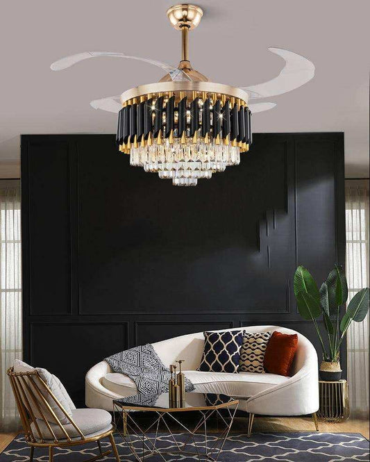 HDC 42" Modern Creative Design Chandelier Ceiling Fan with LED Lighting,Crystal Chandelier Fan Gold Retractable Ceiling Fan Light