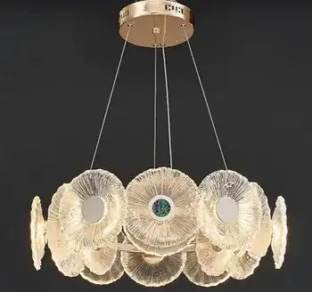 HDC 600 Mm Gold Brass Metal Smokey Glass Led Chandelier Hanging Suspension Lamp - Warm White
