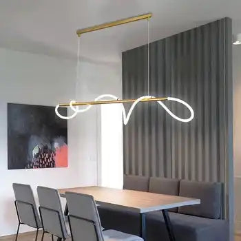 HDC Gold Metallic Led Chandelier 600mm Long With Curly Acrylic Light - Natural White