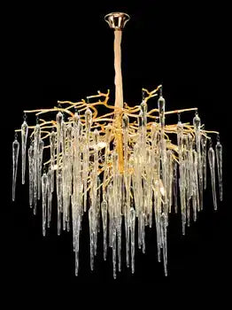 HDC Modern French Creative All-Copper Branch Crystal Chandelier Light European Style Luxury Villa Restaurant Bedroom Decorative Lamp