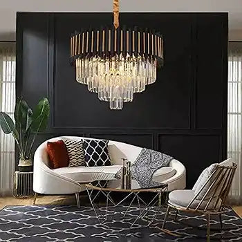 HDC K9 Crystal Pendant Chandelier Hanging Ceiling Lights - (Warm White, Black Gold, 500MM)