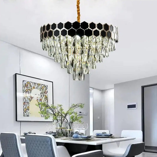 HDC 400mm Gold Black K9 Crystal Pendant Chandelier Ceiling Pendant Lamp Foyer Lights Lamps Modern Hanging - Warm White