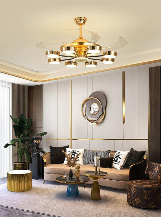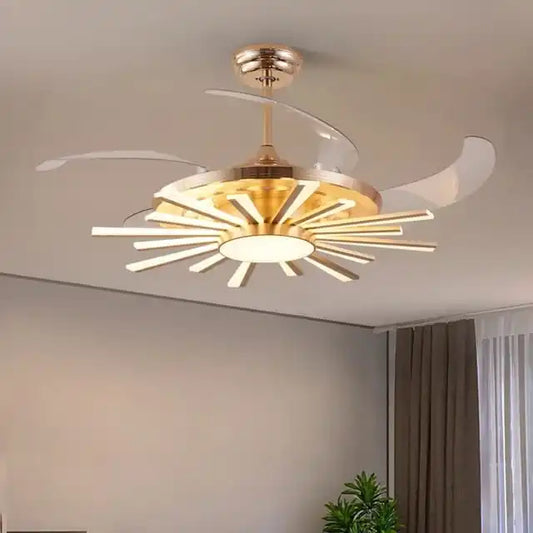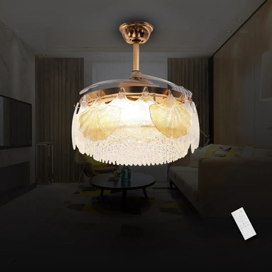 Hdc Invisible Gold Ceiling Fan Chandelier With Remote Control 4 Retractable Abs Blades