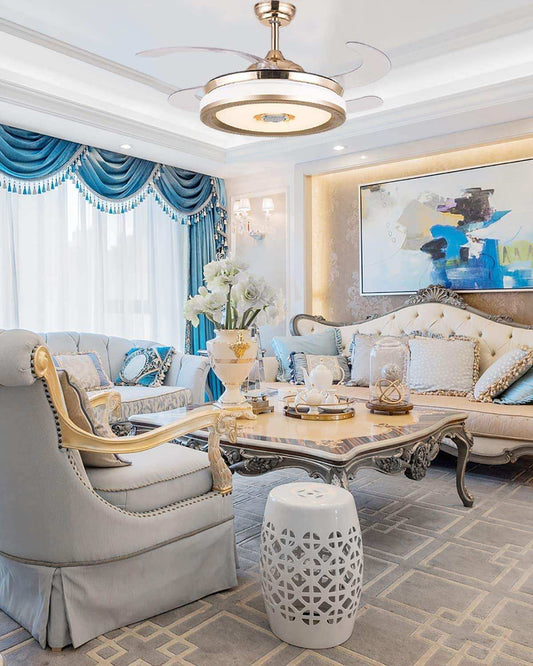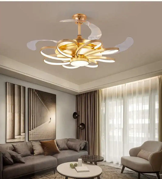 Hdc Invisible Golden Oval Rings Ceiling Fan Chandelier With Remote Control 4 Retractable Abs Blades