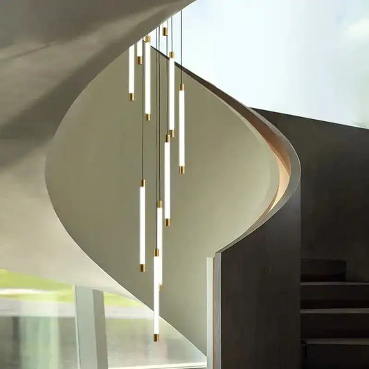 HDC 19 Heads Nordic Design Gold Minimalist Long LED Strip Staircase Chandelier Lights Hanging Double Height Staircase Chandelier
