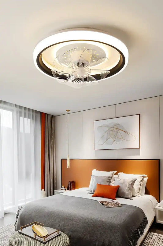 Hdc 500mm Round Black Low Height Ceiling Light With Fan Led Chandelier