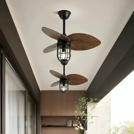 Hdc 32 Inch 3 Blade Industrial Wind Lamp Ceiling Fan Remote Controlled With Light - Dark Wood