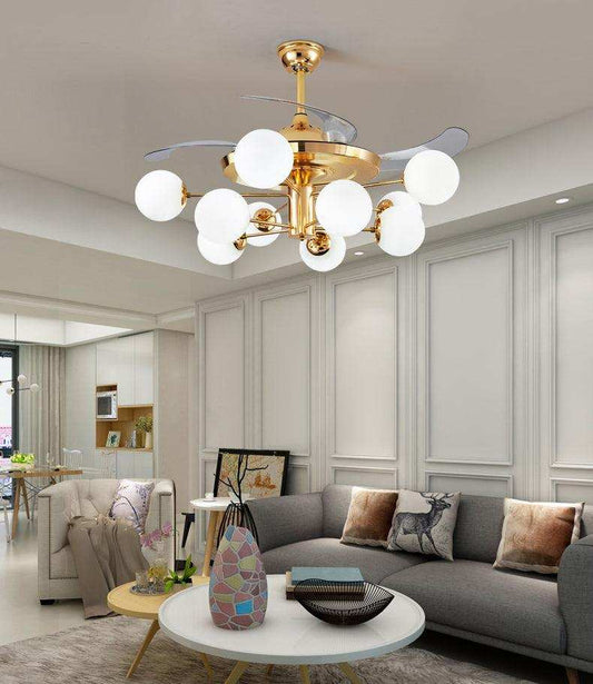 Hdc 6 Light Transparent Ceiling Fan Chandelier Remote Controlled For Living Room Drawing Room