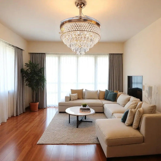 Hdc Invisible Ceiling Fan Chandelier Crystal And Remote Control 4 Retractable Abs Blades