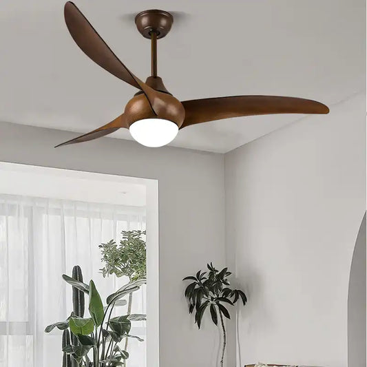 Hdc 52 Inch 3 Blade Walnut Finish Industrial Wind Lamp Ceiling Fan Remote Controlled With Light