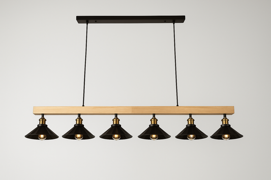 HDC Artisan Vintage 6-Light Black Wooden Linear Pendant Chandelier Light