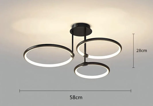 HDC 3 Ring Modern Semi-Flush Mount Black Finish LED Ceiling Light For living Room
