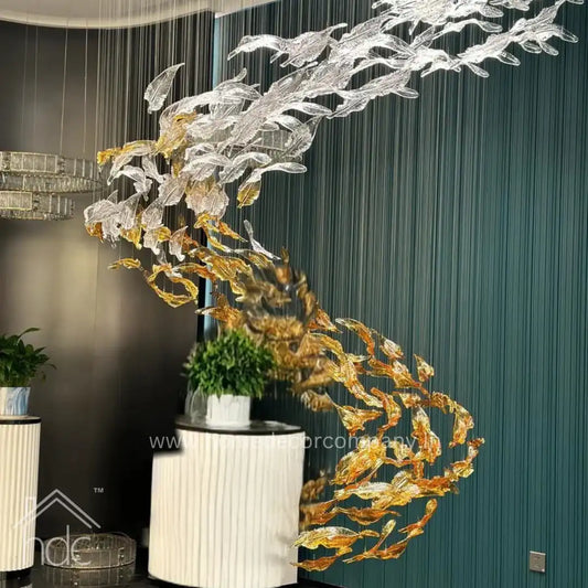 Hdc Feather Leaf Led Double Height Stair Chandelier - Warm White