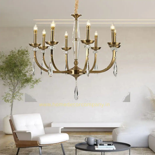 HDC 8 Light Antique Brass Italian Chandelier Light for Dining Hall - Warm White
