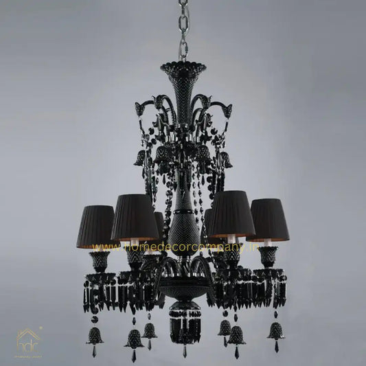 HDC 8 Light Shade Black Glass Italian Chandelier Ceiling Light Hanging - Warm White