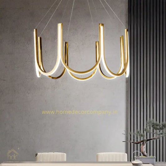 Hdc 1000mm Gold LED Twisted Curl Pendant Chandelier Light - Tricolor