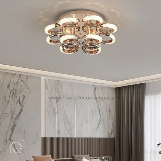 Hdc 2 Ring Tilt Crystal LED Chandelier Hanging Suspension Lamp- Tricolor