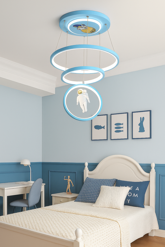 Hdc 3 Ring Blue Futuristic Astronaut Ring Ceiling Light – Space-Themed LED Pendant for Kids Room