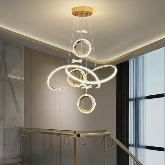Hdc Infinite Rings Golden LED Metal 3 Light Rings Crystal Pendant Chandelier Light - Tricolor