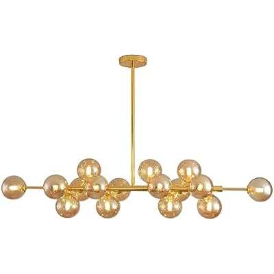 HDC 16 Light Gold Amber Glass Chandelier Ceiling Lights Hanging - Warm White